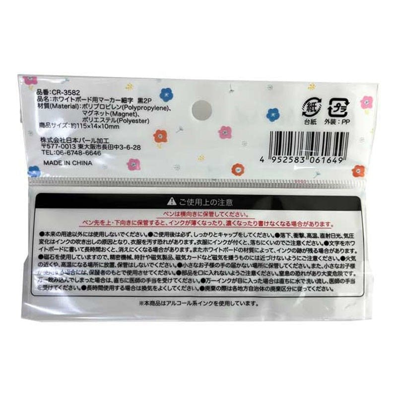 This set includes two fine-point, black ink whiteboard markers with designs printed on the body. These markers are not only stylish but also functional, featuring a magnet and eraser in the cap.
