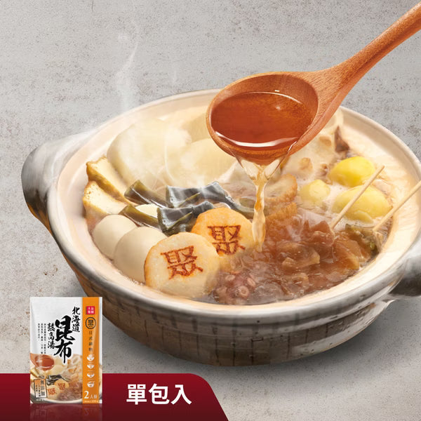 Umami-rich soup base featuring Hokkaido kelp. Clean, savory, and ideal for light Japanese-style hot pots or broth-based dishes.