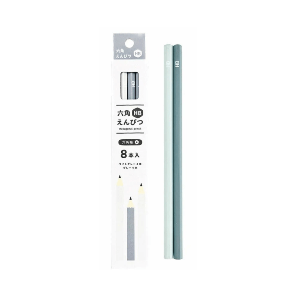 This set includes four ivory and four gray hexagonal HB pencils, for a total of eight pencils. (Pencils are unsharpened.)