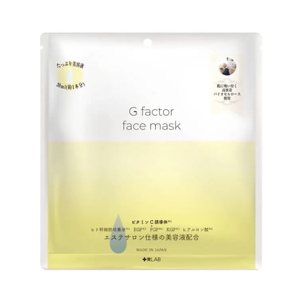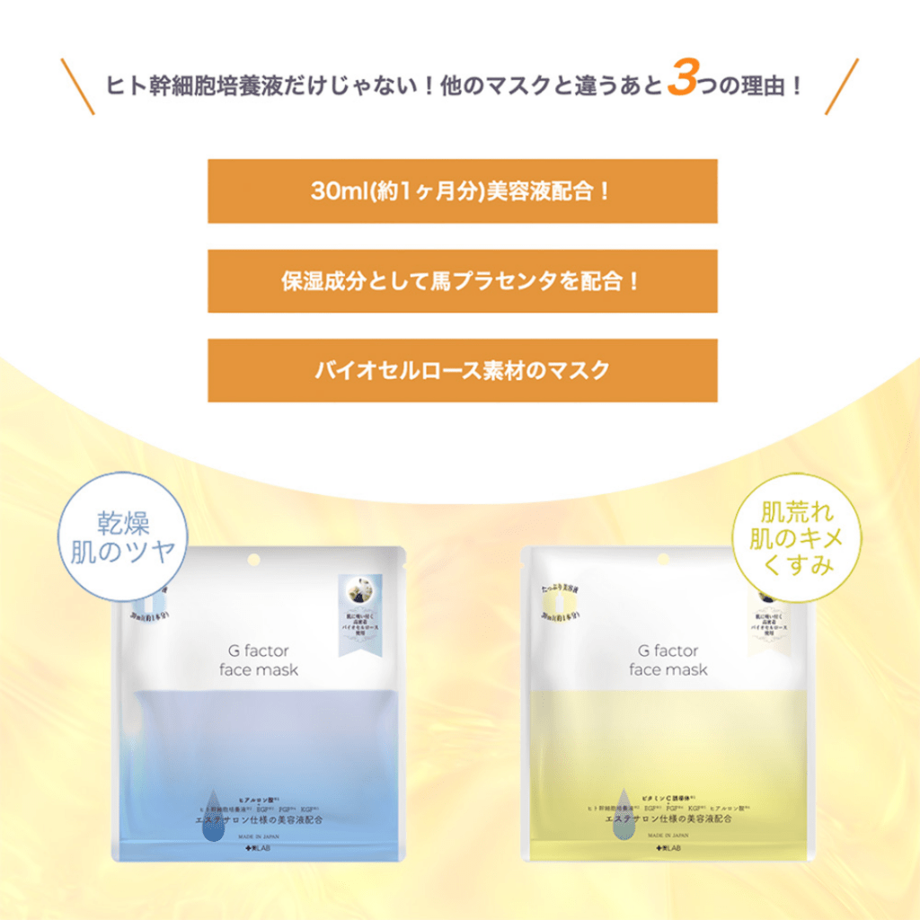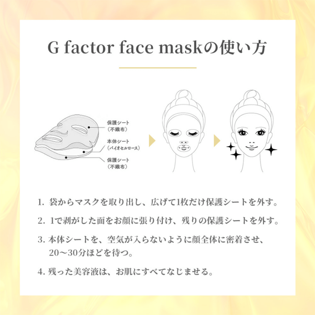This beauty mask is formulated with salon-grade serum and contains moisturizing ingredients like human stem cell culture fluid*1, EGF*2, FGF*3, and KGF*4 for anti-aging care*! Made with biocellulose (a natural plant-derived ingredient) that adheres to the skin, this mask offers an unprecedented feel! Each mask contains a generous 30ml of salon-grade serum. The mask adheres tightly, stays put, and stays in place even when moving, making it perfect for wearing while doing housework or exercising at home.