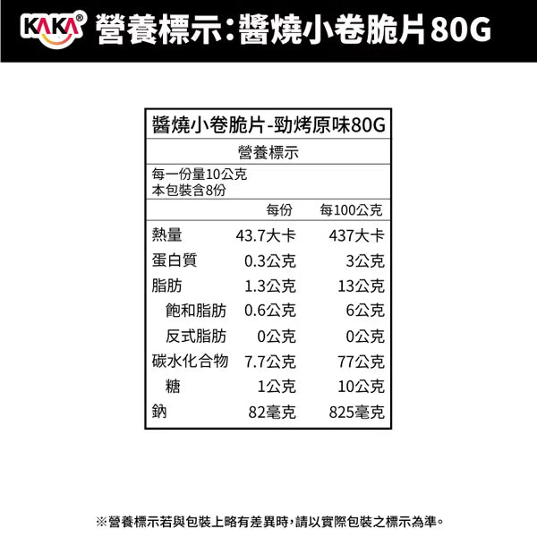 Grilled Squid Crackers [Tapioca Starch, Potato Starch, Squid, Sugar, Salt, Palm Oil, Garlic, Vitamin E (Antioxidant), Yellow No. 5], Palm Oil, Vitamin E (Antioxidant).