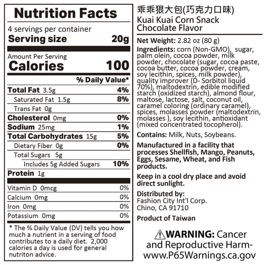 Kuai Kuai Corn Snacks Rich Cocoa Flavor - 80g