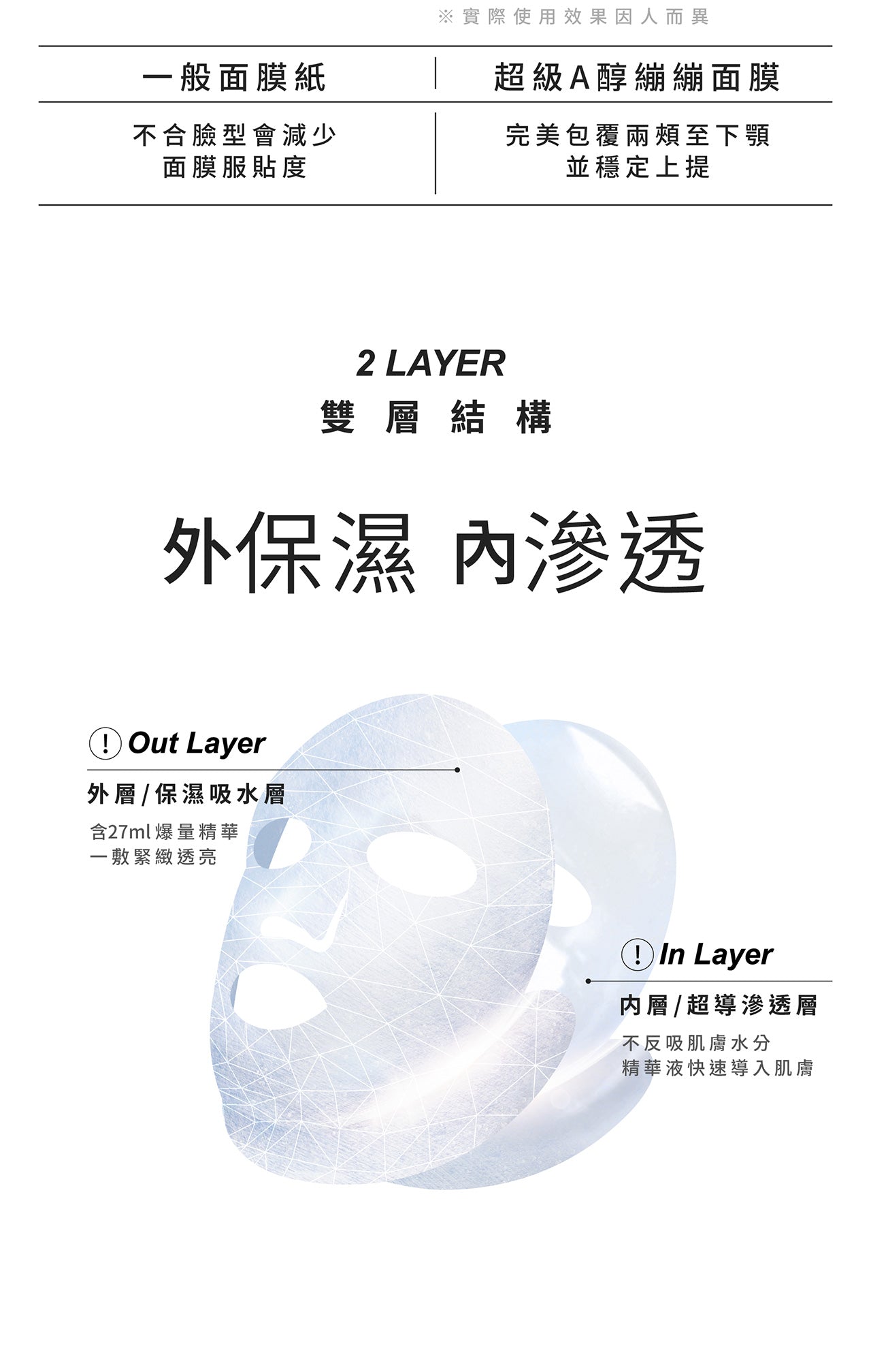 Infused with high-potency Super Retinol, this innovative lifting mask features an extended tension band design that perfectly wraps around any face shape for a 360° firming effect. Instantly tightens and lifts tired, dull skin—revealing a smoother, more youthful glow in just one use!