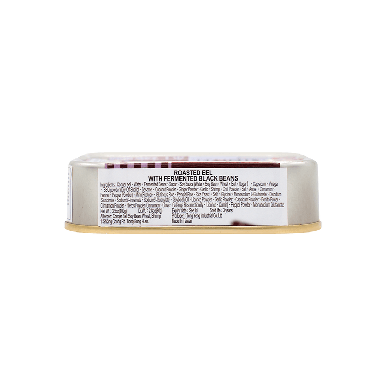 Conger eel, Water, Fermented Beans, Sugar, Soy Sauce (Water, Soy Bean, Wheat, Salt, Sugar), Capsicum, Vinegar, BBQ powder (Dry Of Shallot, Sesame, Coconut Powder, Ginger Powder, Garlic, Shrimp, Chili Powder, Salt, Anise, Cinnamon, Fennel Pepper Powder) Mirin (Fuctose, Glutinous Rice, Penglai Rice, Rice Yeast, Salt, Glycine, Monosodium L-Glutamate, Disodium Succinate Sodium5-Inosinate, Sodium5'-Guanylate), Soybean Oil, Licorice Powder, Garlic Powder, Capsicum Powder, Bonito Power, Cinnamon Powder, Herbs Powder (Cinnamon, Clove, Galanga Resurrectionlily, Licorice, Cumin), Pepper Powder, Monosodium Glutamate