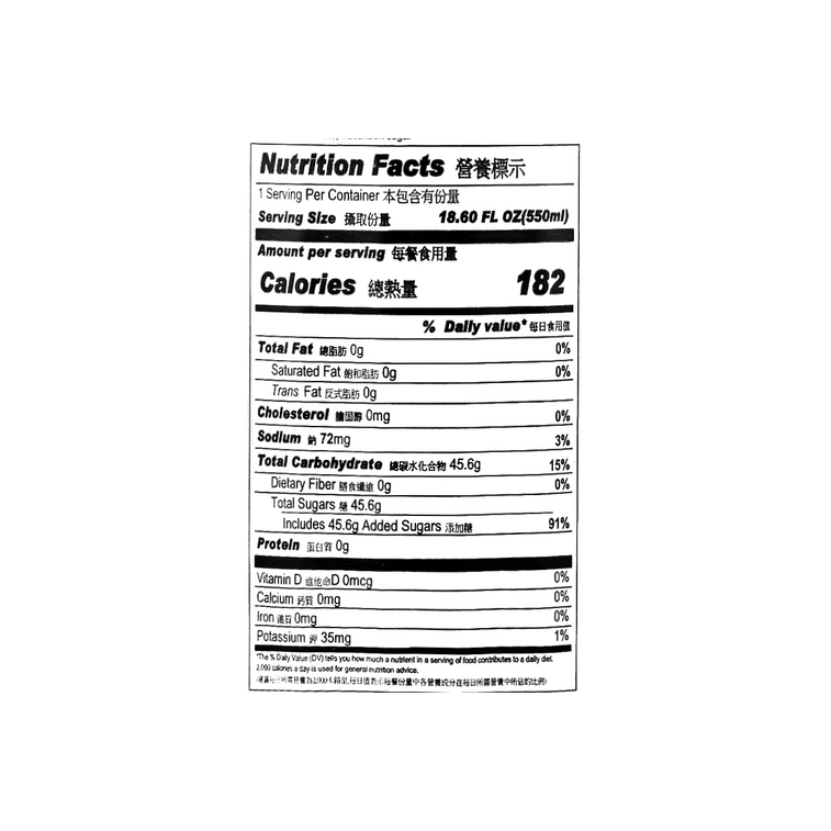 Water, cane sugar, tea leaves (Ceylon black tea, black tea, green tea), concentrated lemon juice, citric acid, flavoring (contains acid-modified starch, sucrose fatty acid esters, palm oil), sodium citrate, wasanbon sugar