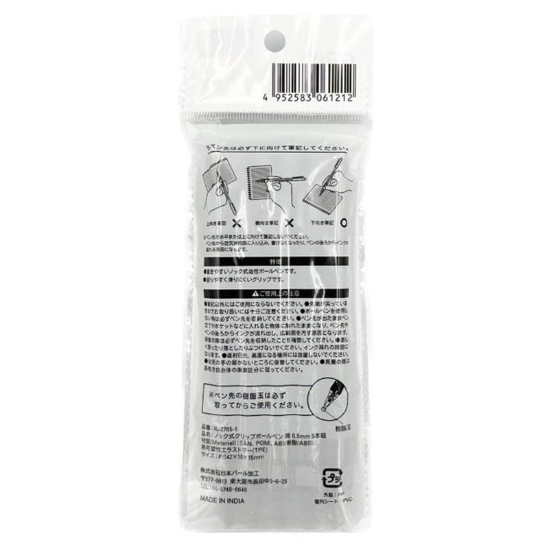 Retractable Grip Ball Pen Black 0.5 mm – 5 Pack