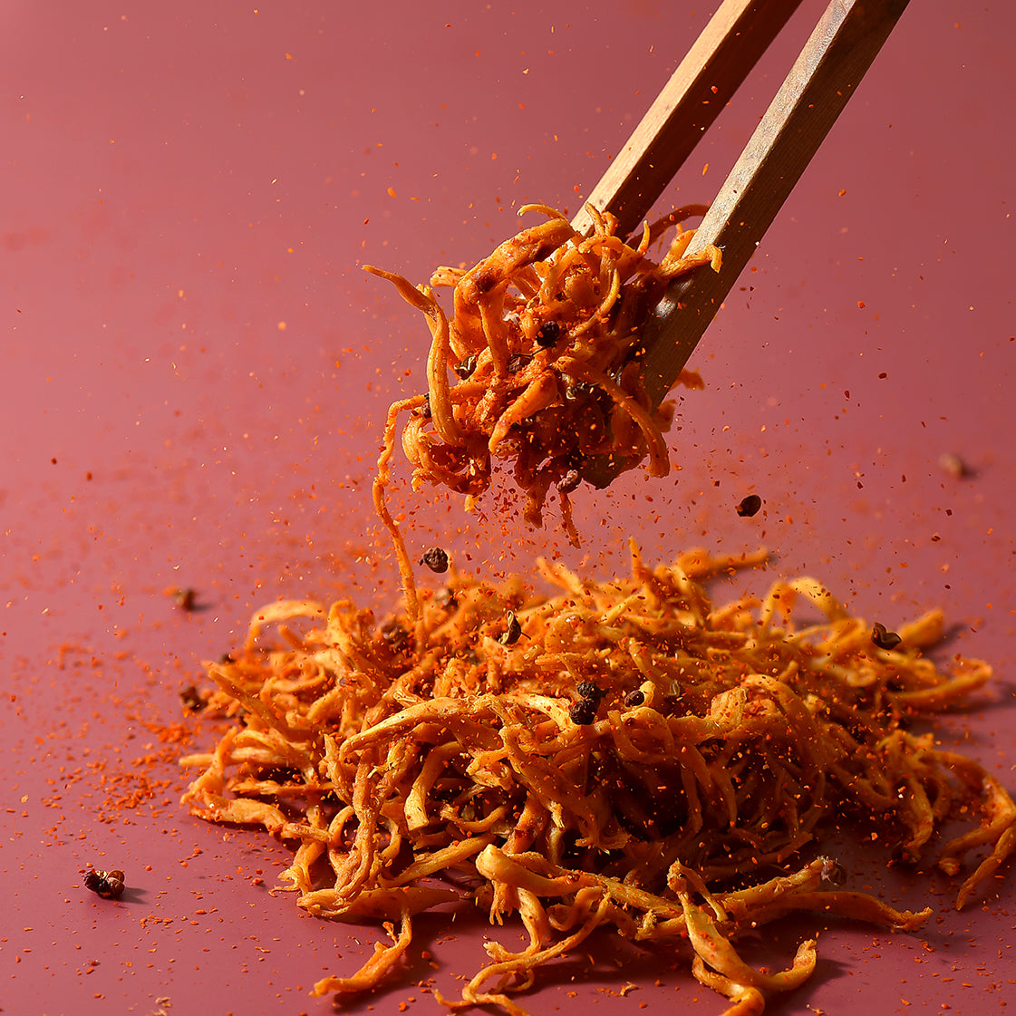 “A Spicy Sensation for Your Taste Buds.” When the bold, numbing heat of Sichuan meets the rich, creamy cheese, the irresistible, fragrant spice lures you in with every bite. Forget elegance; you’ll be too busy savoring the mouthwatering, saliva-inducing flavors. Spicy Cheese Strings—ready to captivate all your senses.