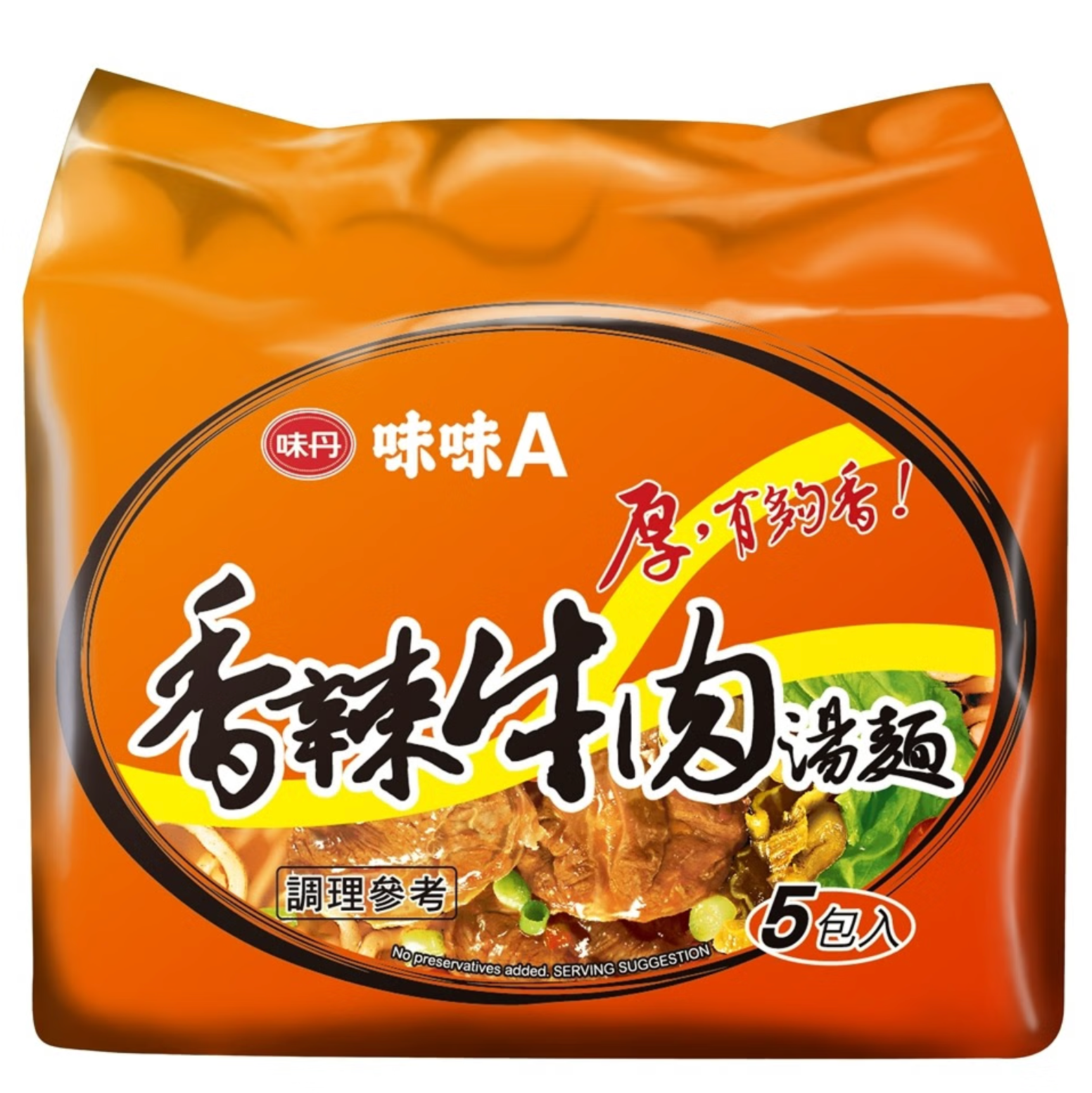 Wei Wei A Spicy Beef Flavor Instant Noodles (90g x 5 Pack) brings the bold taste of slow-simmered beef broth to life with a punch of scallion-infused chili oil. The rich, savory soup captures the essence of traditional Taiwanese beef noodles, layered with warmth, spice, and nostalgic depth. Perfect for those craving a classic flavor with just the right kick to satisfy even the most discerning palate.