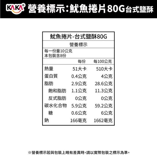 KAKA鱿鱼卷片 台式盐酥味 - 80g