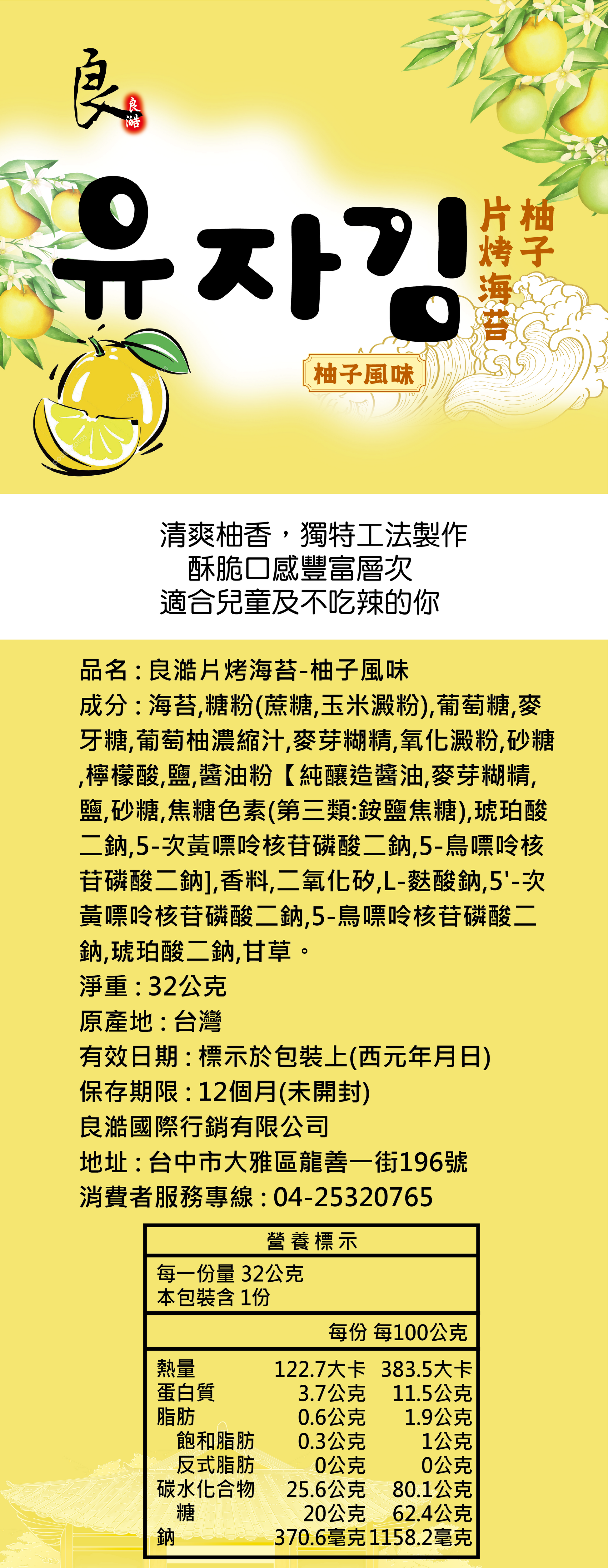 清新柚子香结合海苔脆口,酸香爽口,是女生最爱的清爽系零嘴。