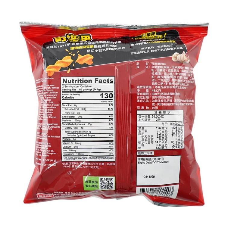 選用天然豌豆為原料,搭配經典不敗蒜味。正港原創的獨特螺旋造型,酥脆札實的爽快口感。台灣全民零食,越吃越上癮。