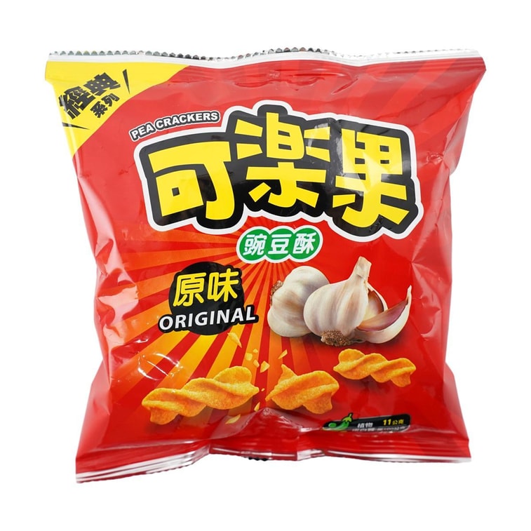豌豆、玉米澱粉、麵粉、棕櫚油、鹽、糖、蒜粉、味精、膨鬆劑、乳化劑、維生素E(抗氧化劑)