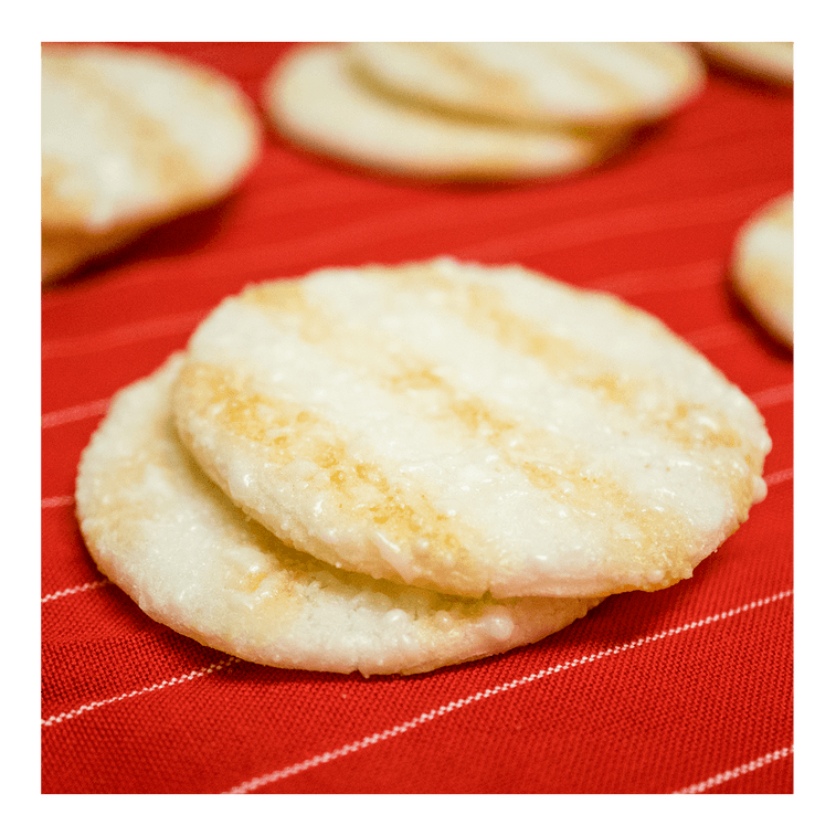 使用台灣在地米製成,外層覆蓋細緻糖霜,甜中帶鹹,口感酥脆,老少皆宜。